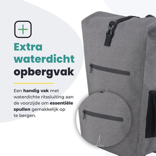 Voltano Luxe E-bike Fietstas 28L – Grijs – Pakaftas Met Laptop vak – 100% Waterdicht – Met Gratis Schouderband