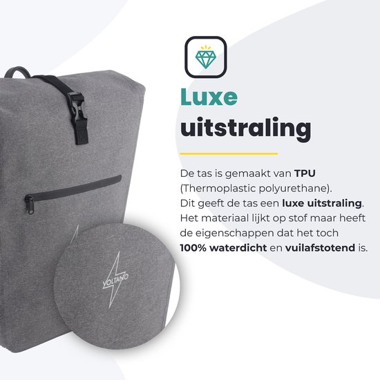 - Bij bol.com kun je de Voltano Luxe E-bike Fietstas 28L – Grijs – Pakaftas Met Laptop vak – 100% Waterdicht - Met Gratis Schouderband kopen voor de prijs van €44,95. Dit is de goedkoopste webshop